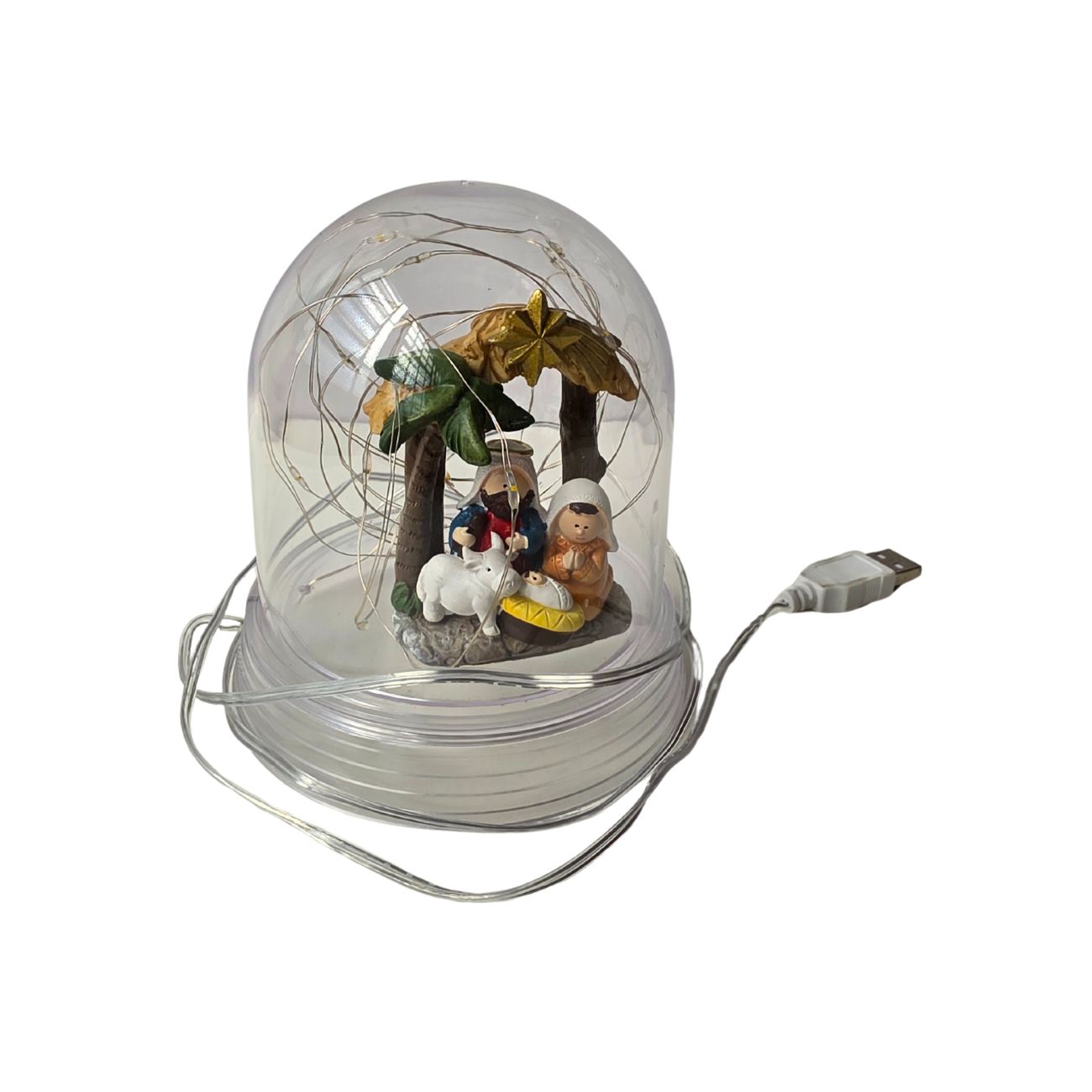 Mini Presepio Infantil Com Redoma+Fio de Fada BaseTransparente- M2